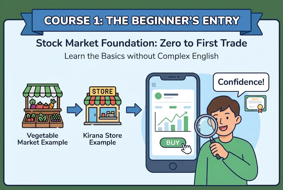 Designed for absolute beginners. We remove the fear of the market and explain complex terms using simple daily-life examples (like the vegetable market or Kirana store). By the end of this course, you will know how to Trade with confidence.
